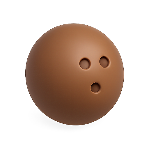 A detailed 3D rendering of a brown bowling ball, showcasing its smooth surface and finger holes, suitable for sports-related graphics and promotional content.