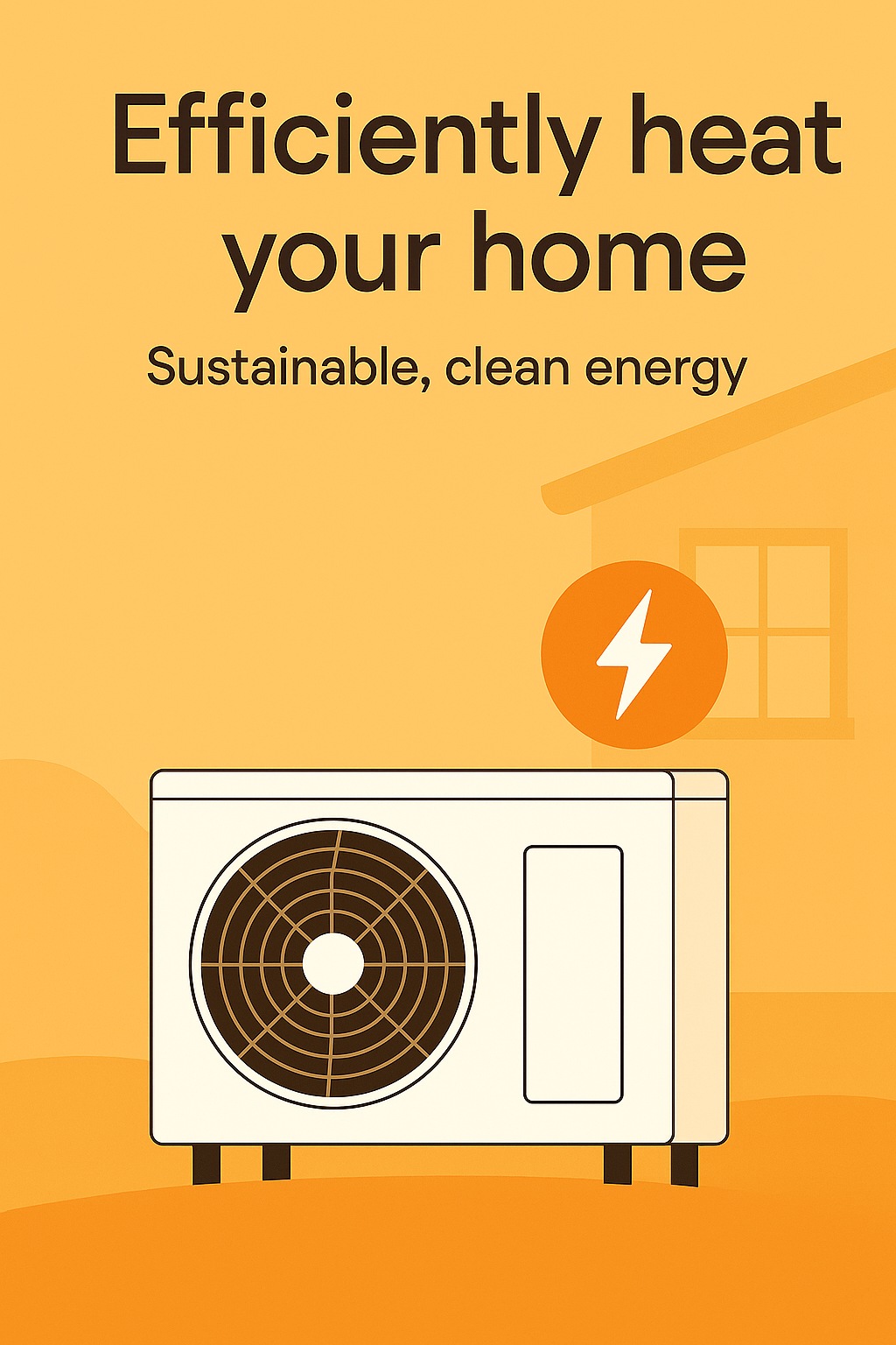 /Collection: /by davooda/Type: PNG/Informative promotional graphic showcasing an energy-efficient heating unit with a modern design, aimed at promoting sustainable energy solutions for home heating.