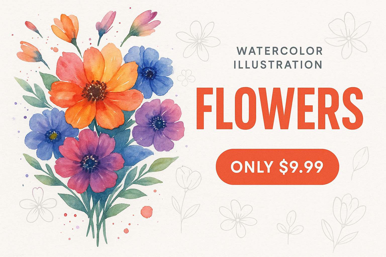 Dynamic Watercolor Floral Advertisement with Bold Typography