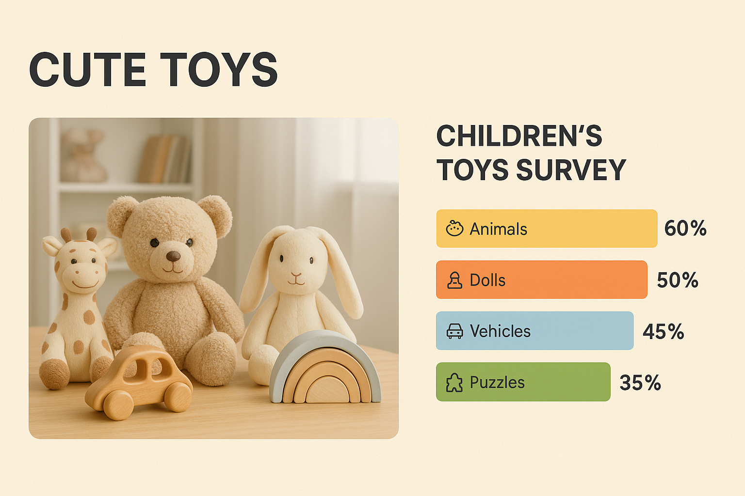 An engaging infographic showcasing a children's toy survey with plush toys and colorful data representation. Ideal for parenting blogs or toy marketing.