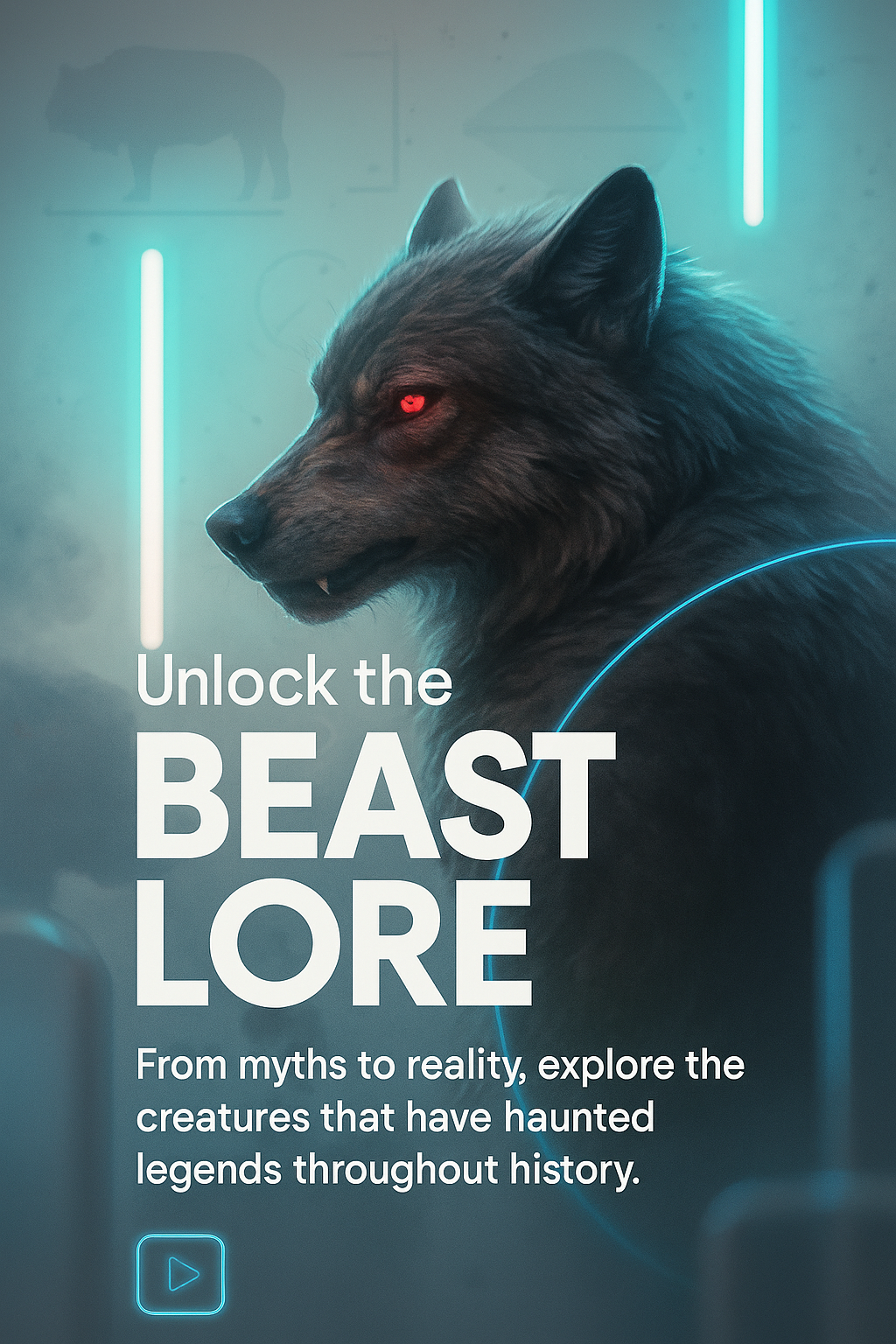 /Collection: /by davooda/Type: PNG/A vibrant promotional carousel slide featuring a realistic depiction of a beast, illuminated by neon lights. The design includes engaging text blocks and a mystical atmosphere.