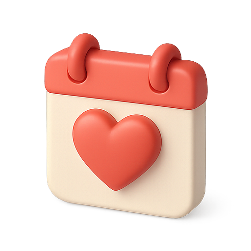 3D Calendar Icon with Heart Symbol