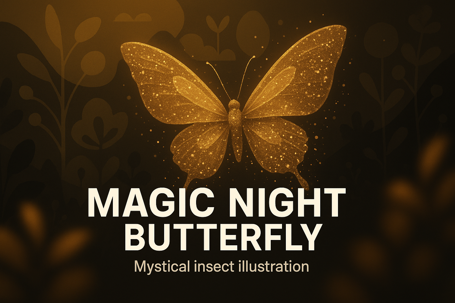 Mystical Golden Butterfly Illustration with Fantasy Elements