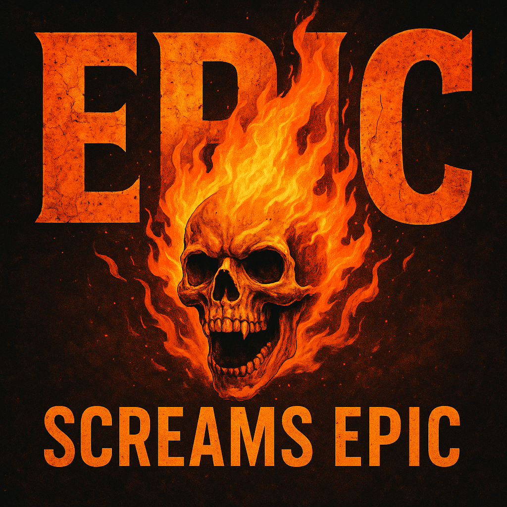 Striking graphic design showcasing a fiery skull with bold 'EPIC' typography, ideal for promotional materials, album covers, or event posters.