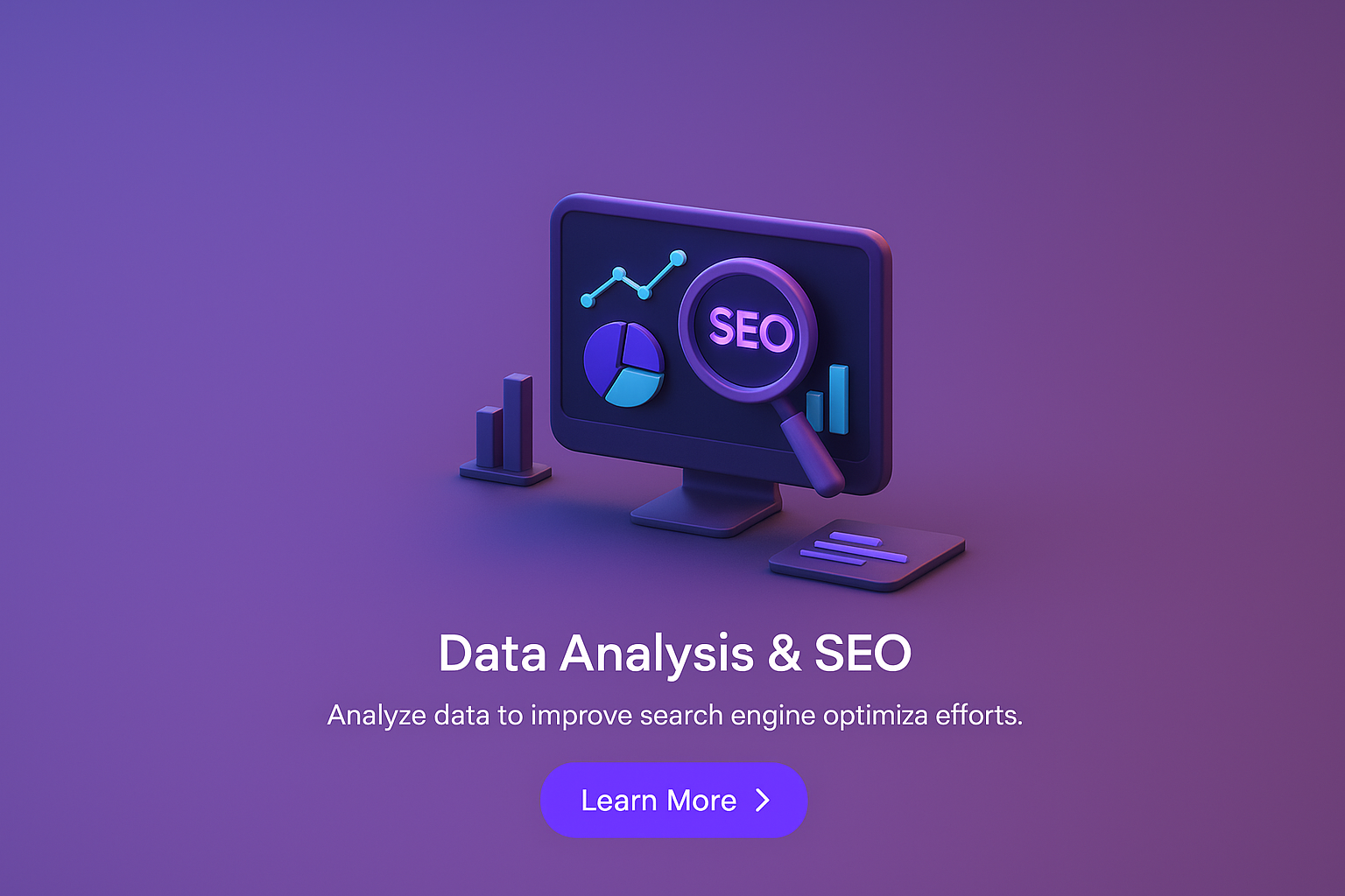 /Collection: /by davooda/Type: PNG/A visually engaging 3D representation of data analysis and SEO, featuring a computer screen with graphs and charts. The background transitions from gradient to solid color, creating a modern aesthetic.