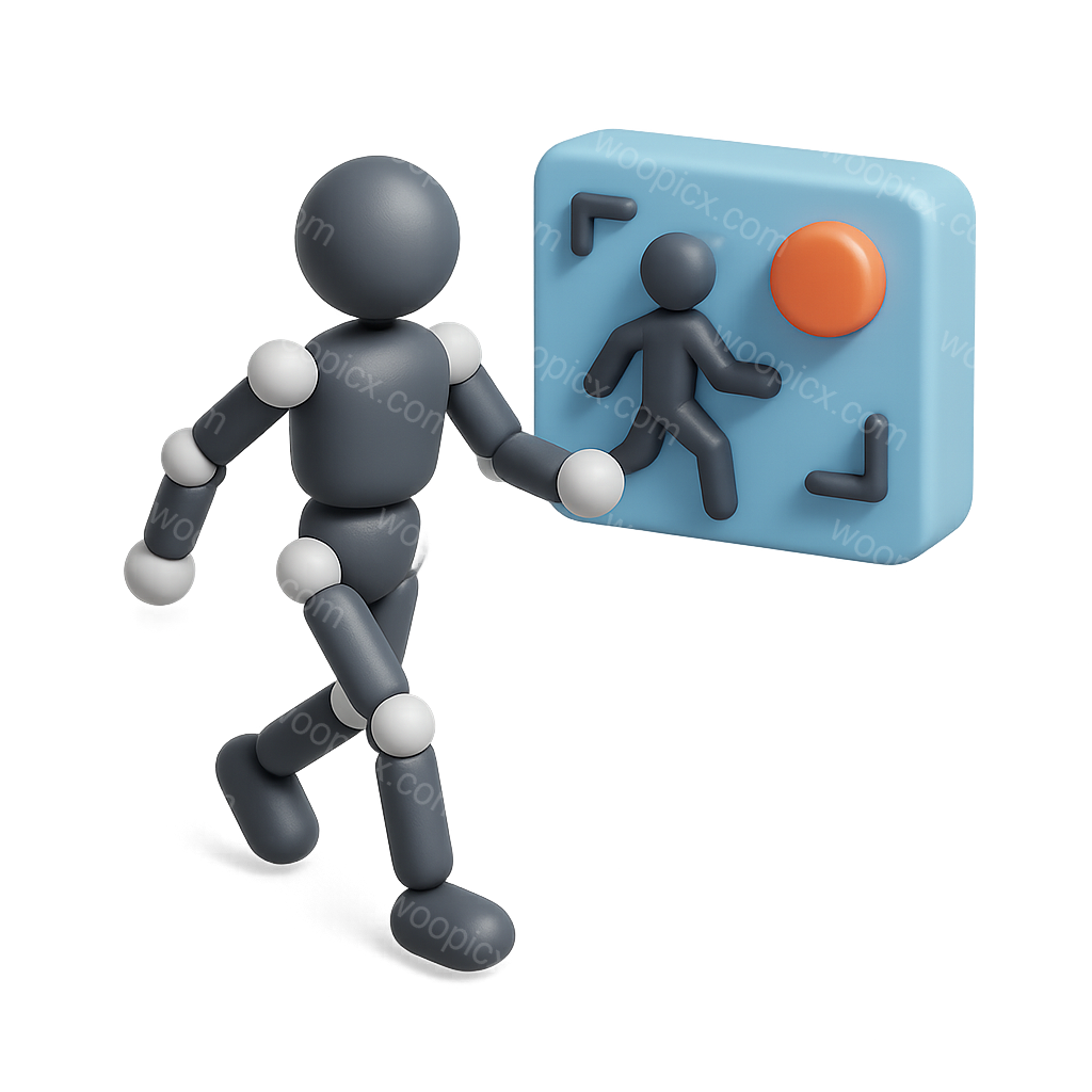 3D Motion Capture Icon Featuring Stylized Figure and Monitor