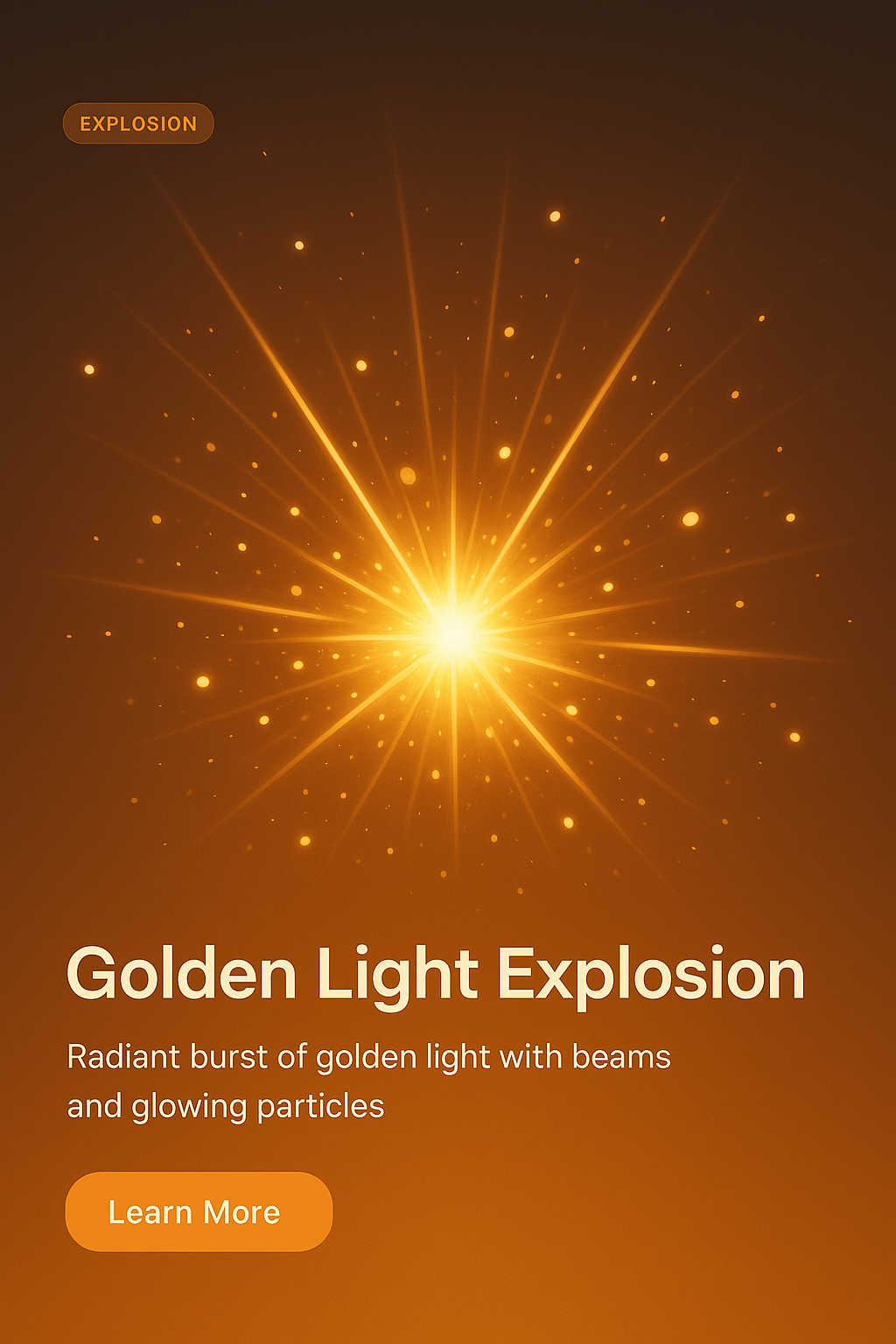 /Collection: /by davooda/Type: PNG/This image features an explosion of golden light with radiant beams and glowing particles, set against a smooth gradient background. Ideal for eye-catching designs.