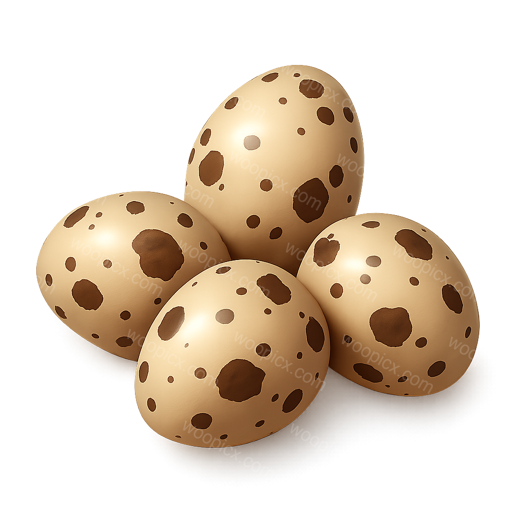 /Premium/Collection: /by davooda/Type: PNG/A collection of four realistic quail eggs displayed in a three-quarter view. The eggs feature a smooth texture and distinct speckled patterns against a soft gradient background, enhancing their 3D appearance.