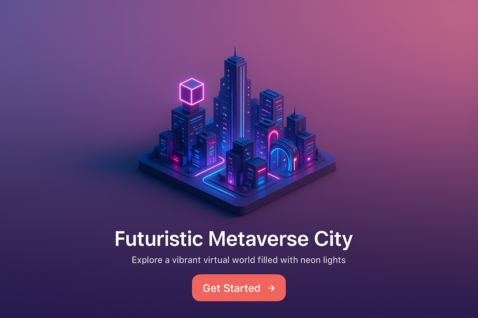 Futuristic Metaverse City with Neon Lights and 3D Design