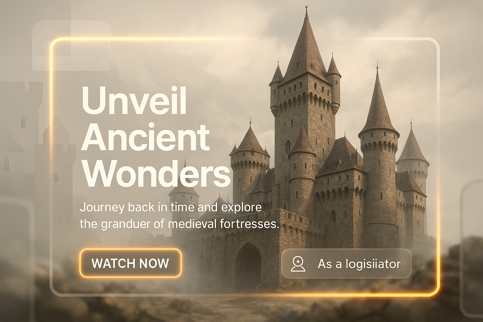 Engaging promotional banner showcasing a medieval fortress, designed to invite viewers to explore ancient wonders. Ideal for travel or history-related campaigns.
