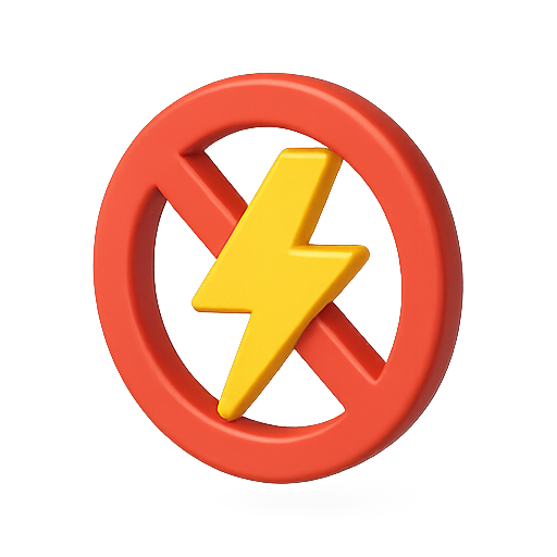 A striking no electricity symbol featuring a bold red circle with a yellow lightning bolt, ideal for warning signs or electrical safety graphics.
