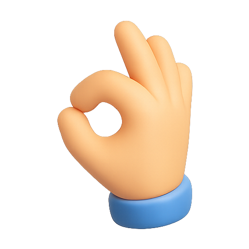 A stylized 3D rendering of an 'Okay' hand gesture, featuring soft colors and a cartoonish design. Ideal for digital communication and social media use.