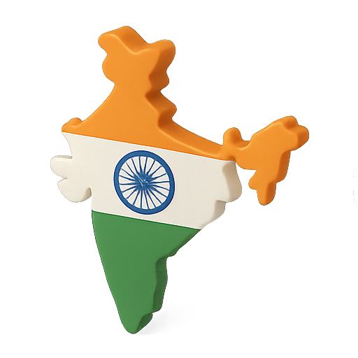 A stylized 3D map of India showcasing the national colors and emblem, ideal for educational or cultural presentations.