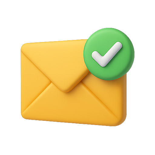A vibrant 3D representation of an email envelope with a green checkmark, symbolizing successful email delivery or verification. Ideal for digital communication themes.