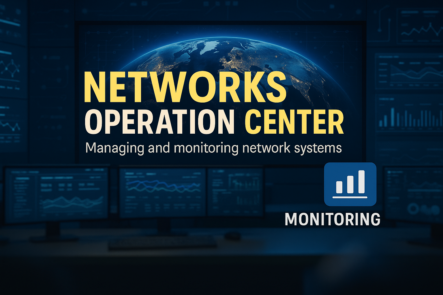 Modern Networks Operation Center Graphic with Earth Visualization