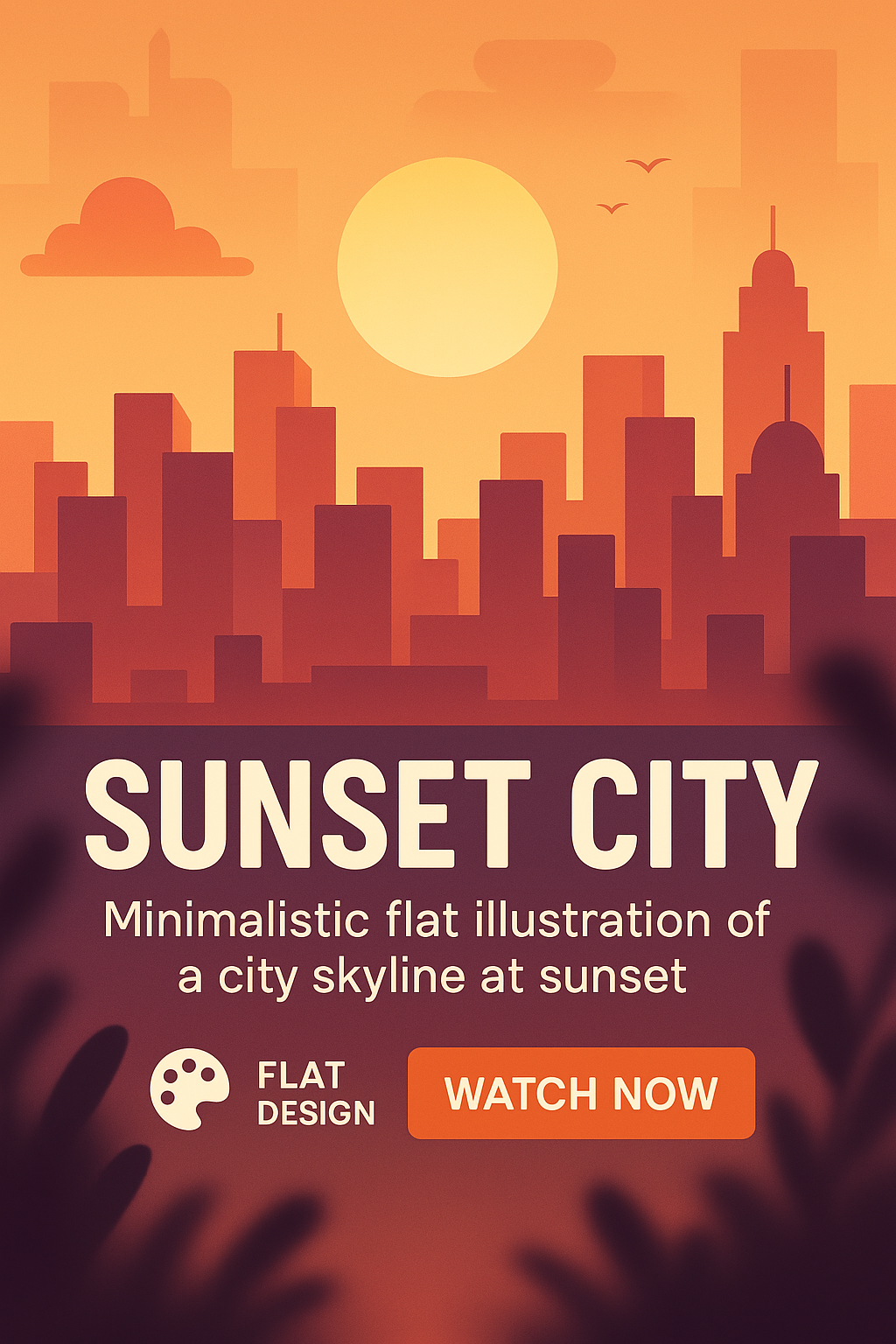 Minimalistic Flat Illustration of City Skyline at Sunset