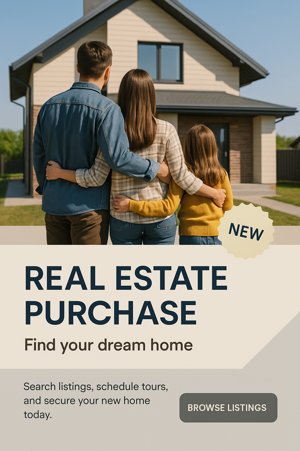 Real Estate Promotional Graphic Featuring Home Buying and Selling