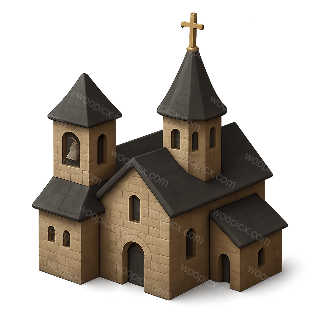 Stylized 3D Monastery Icon with Isometric View
