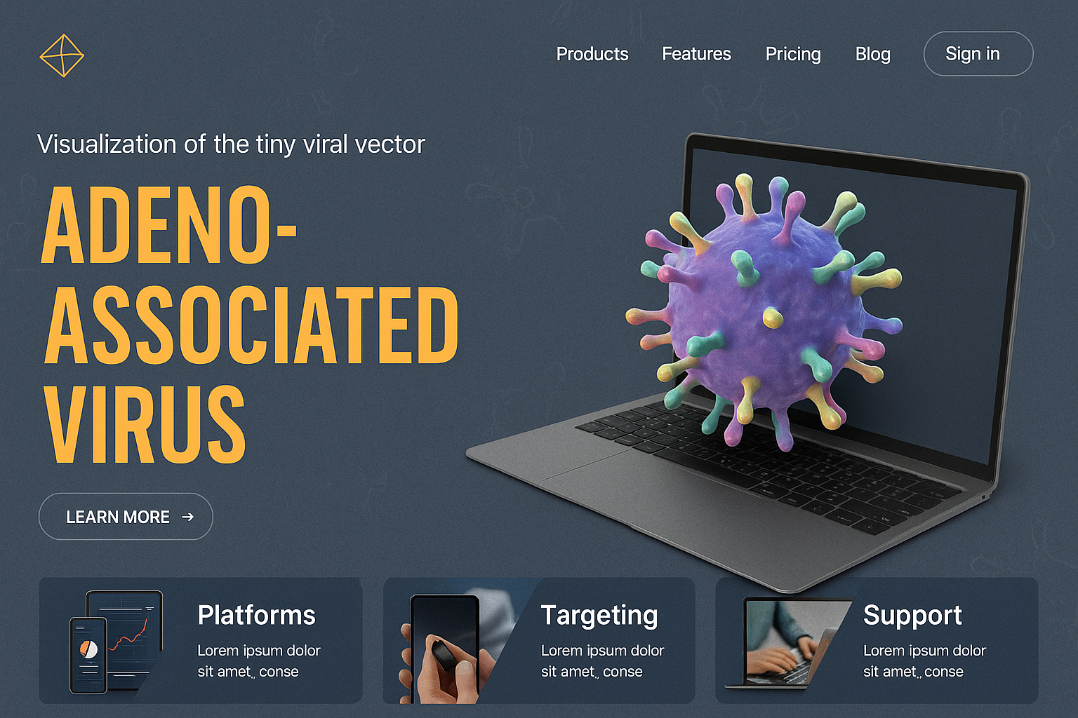 Modern Landing Page Featuring Adeno-Associated Virus Illustration
