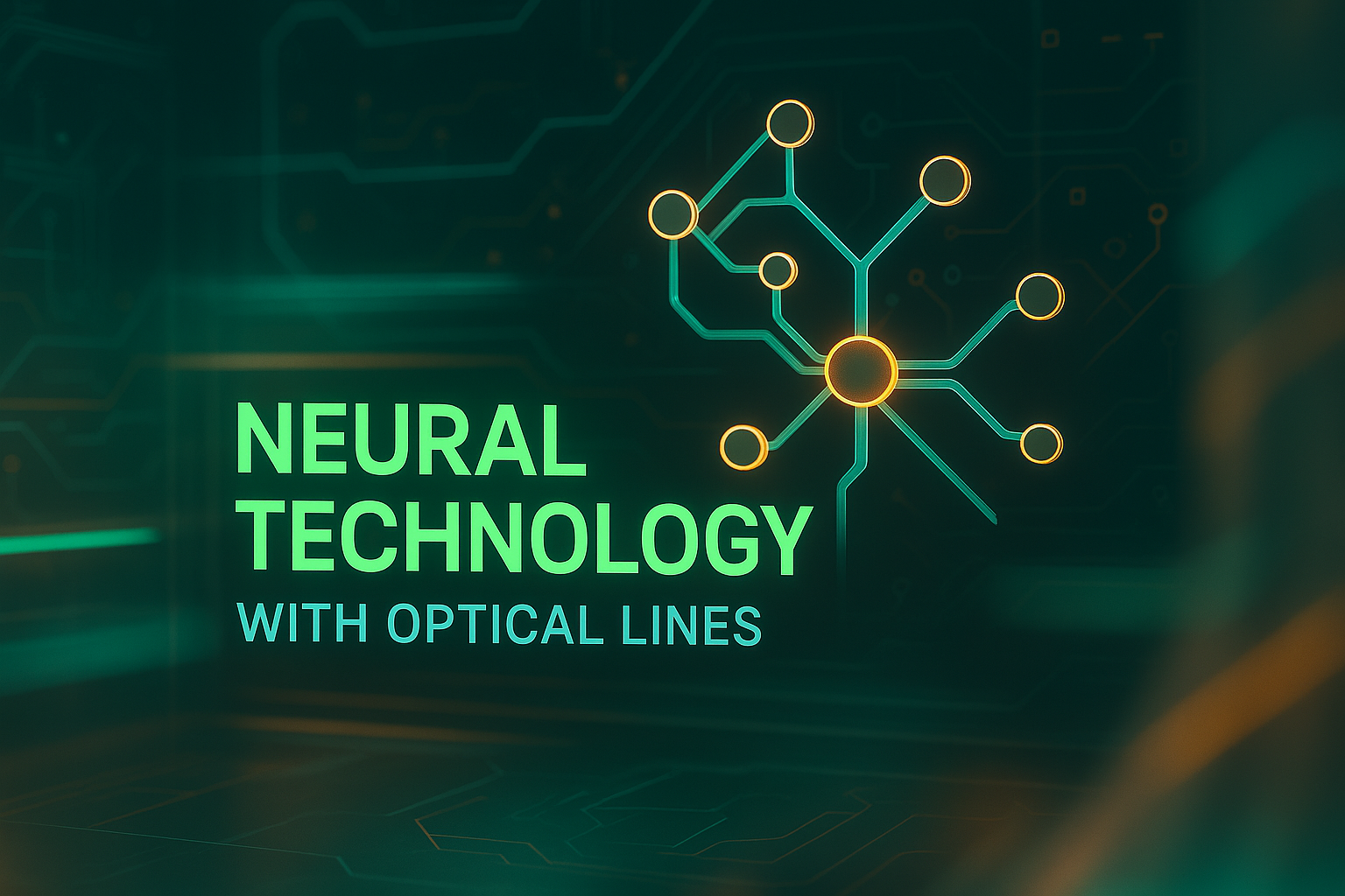 Modern digital graphic showcasing neural technology with optical lines and circuit-like elements, ideal for tech-related presentations or marketing materials.