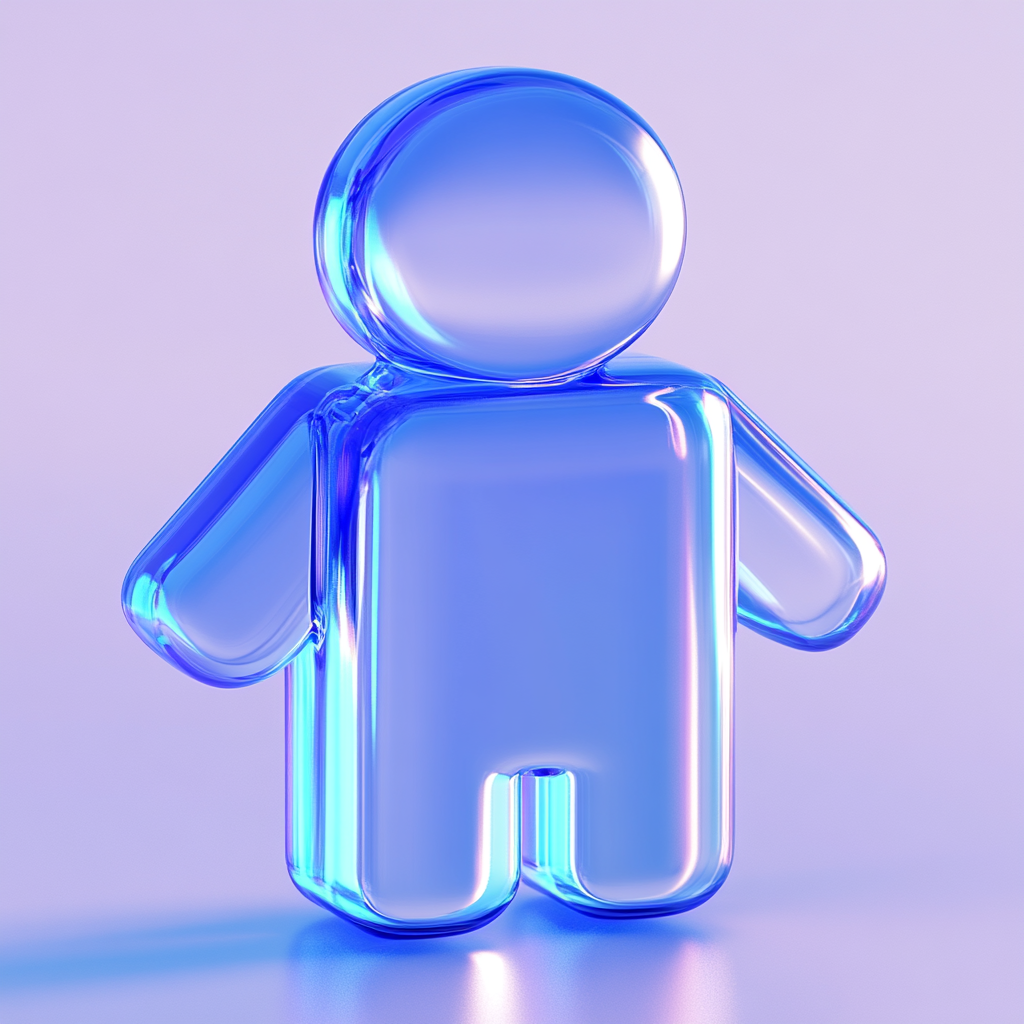 A stylized 3D rendering of a glossy blue figurine with a simplistic design, suitable for use in digital art, branding, or as a playful icon in tech-related projects.