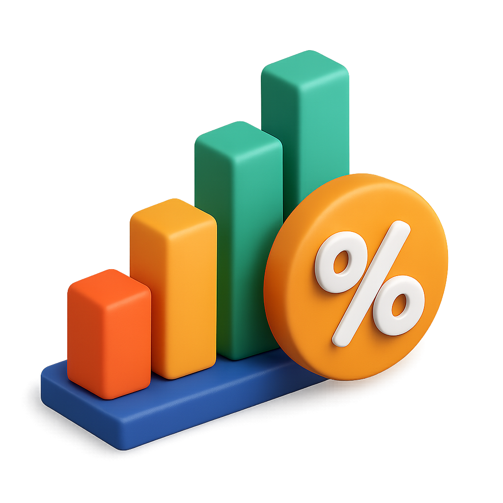 Stylish 3D Bar Graph Icon with Percentage Symbol
