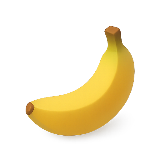 A vibrant and stylized 3D illustration of a banana, featuring smooth gradients and a clean design. Ideal for food-related graphics or playful branding.