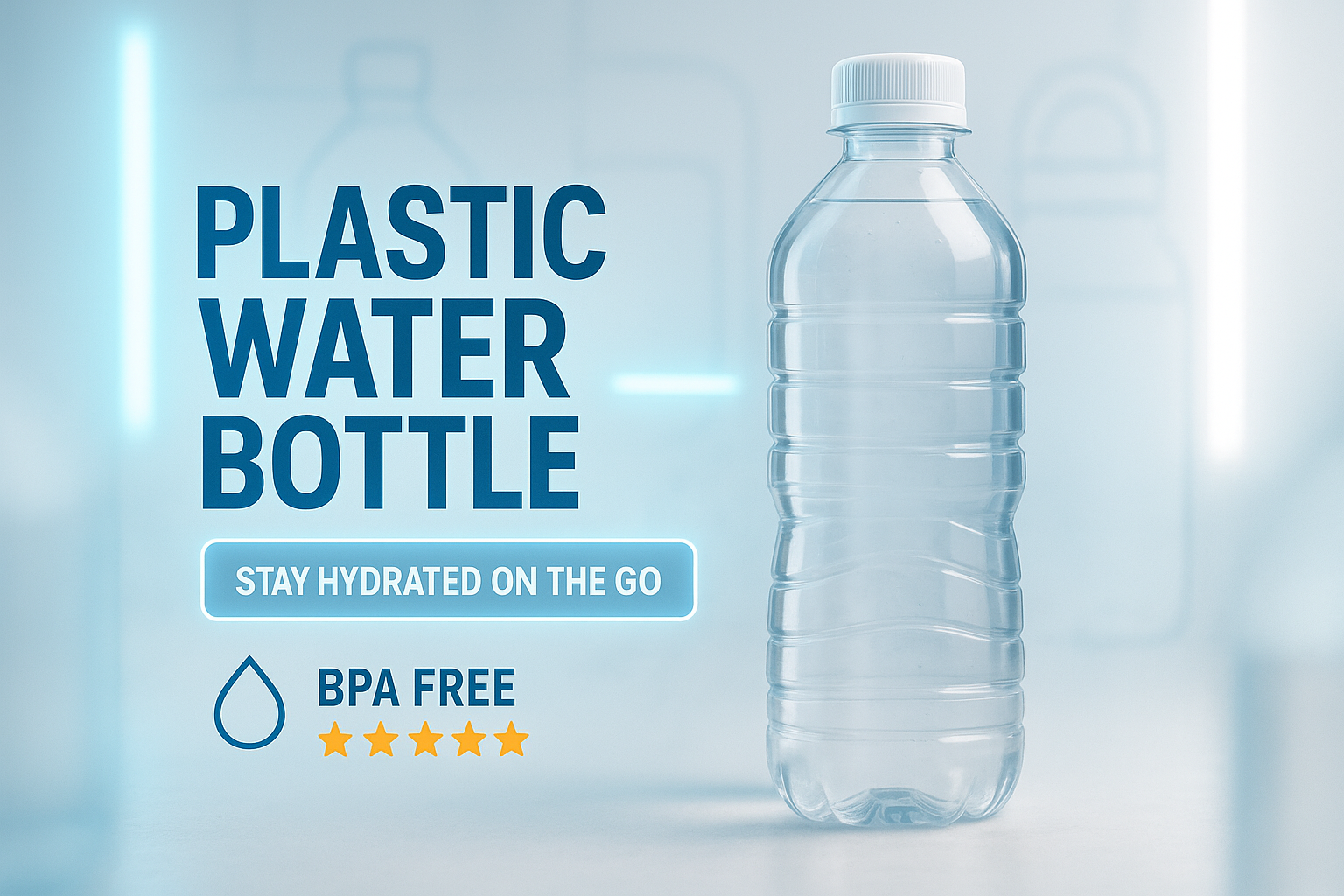 Promotional Image of a Plastic Water Bottle with Hydration Theme