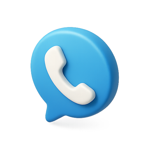 3D-rendered communication icon featuring a phone symbol on a blue speech bubble background. Ideal for app design and digital communication platforms.