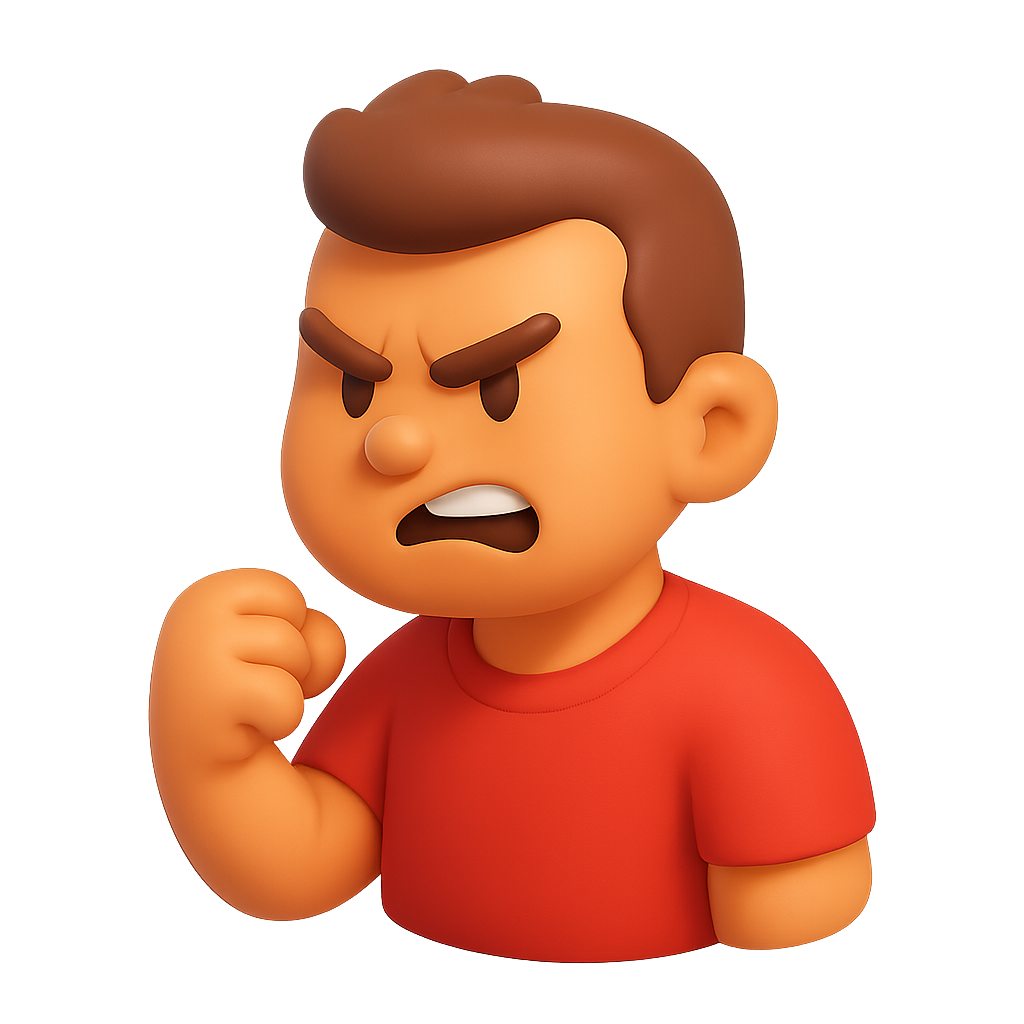 /Collection: /by davooda/Type: PNG/A stylized 3D icon of a bully character, depicted in a three-quarter view. The character has a fierce expression with a clenched fist, wearing a red shirt, set against a dark, blurred background for a dramatic effect.