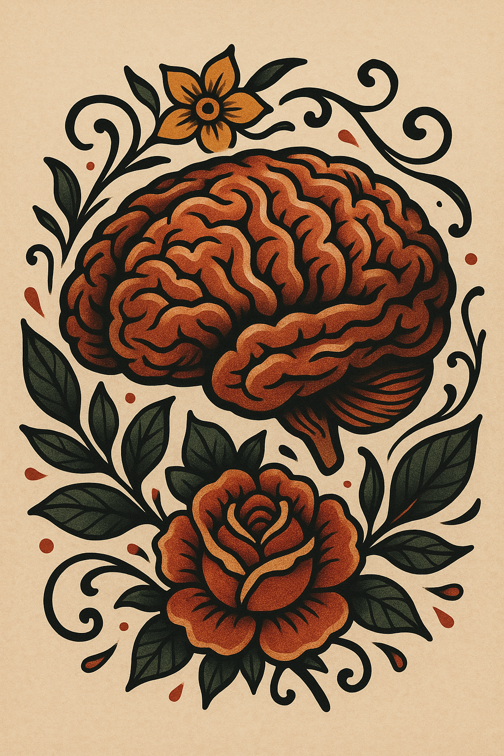 Artistic Illustration of a Brain Surrounded by Floral Elements