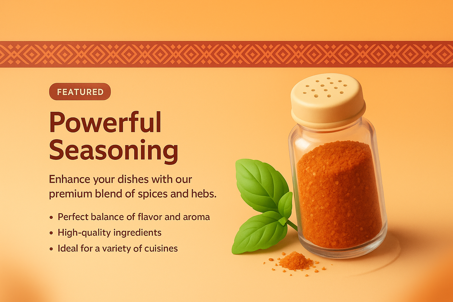 /Collection: /by davooda/Type: PNG/A visually appealing 3D illustration of a seasoning jar filled with vibrant orange spice, accompanied by fresh basil leaves. The design features a stylish header with highlighted text.