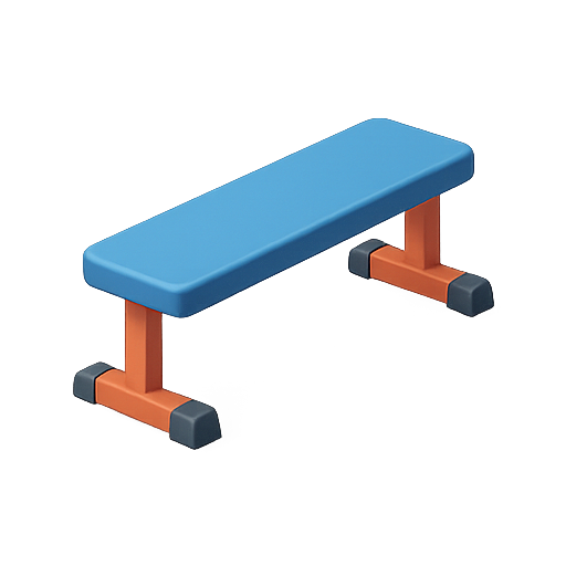 /Collection: /by davooda/Type: PNG/A vibrant and modern icon depicting a workout bench, ideal for fitness applications or promotional materials related to gym and exercise. The design features a blue padded top with orange supports, conveying a sense of activity and health.