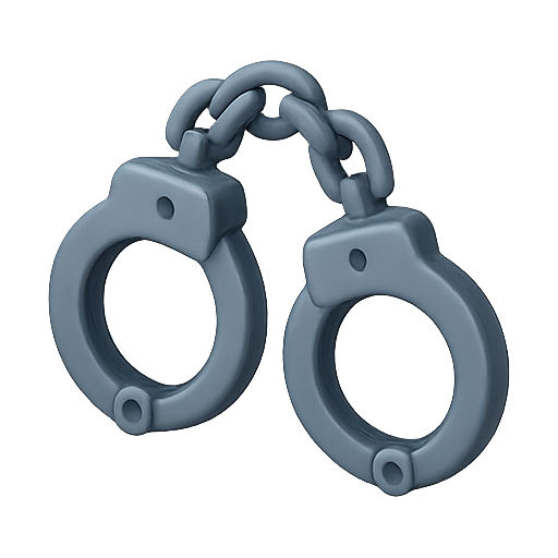/Collection: /by davooda/Type: PNG/A detailed 3D render of handcuffs, representing themes of law enforcement and justice. This graphic can be used in educational materials, articles, or media related to crime and law.