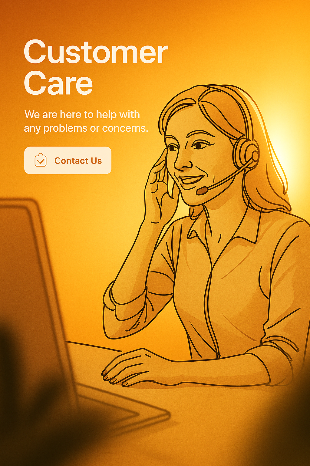 This image features a customer care representative in a warm, inviting style, suitable for promoting support services. It serves as a banner or social media post.