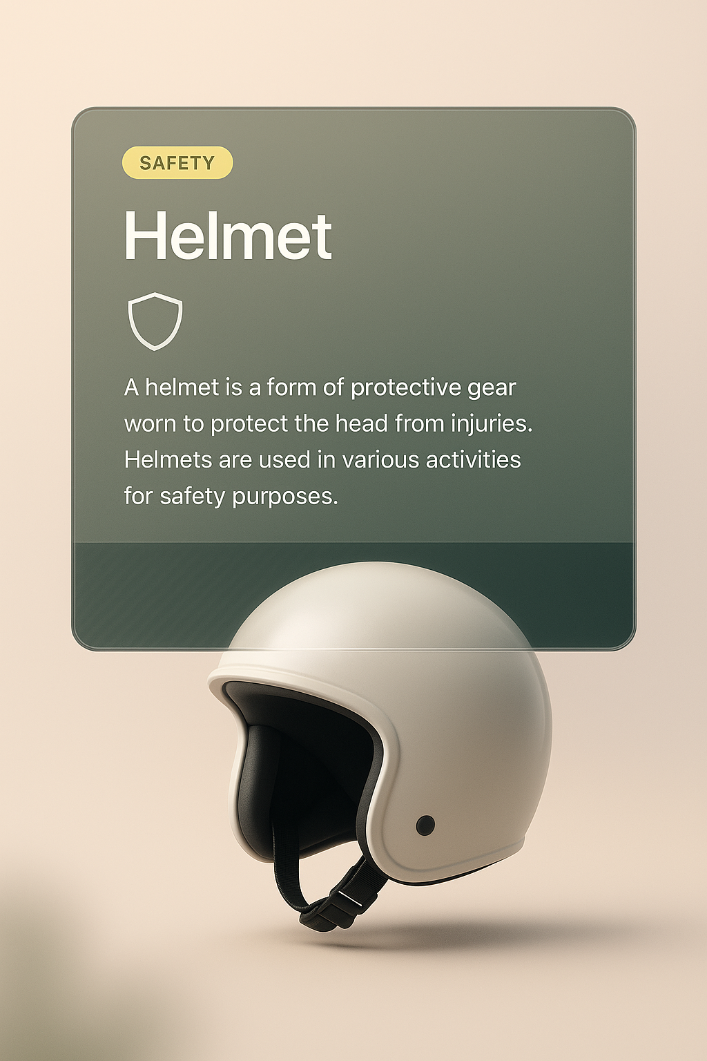 /Collection: /by davooda/Type: PNG/This image features a 3D illustration of a safety helmet, complemented by a modern overlay containing informative text and a shield icon, creating a cohesive design.