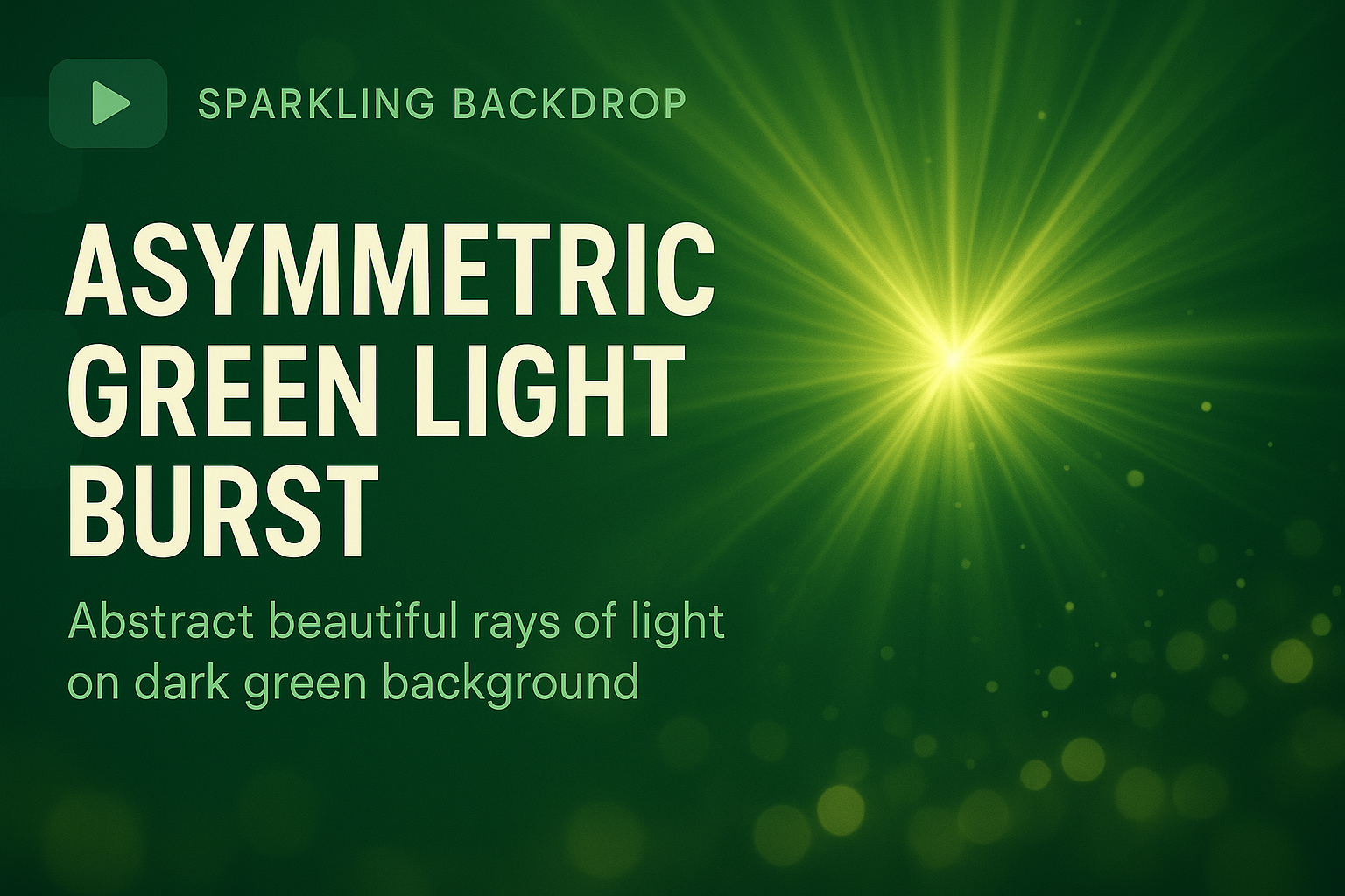 Vibrant graphic featuring an asymmetric burst of green light rays on a dark green backdrop, ideal for backgrounds in digital media and presentations.