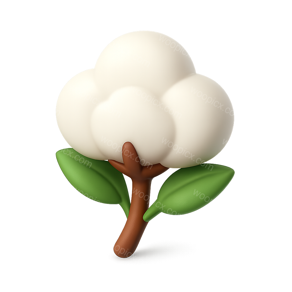 Stylized 3D Cotton Plant Icon with Isometric Design