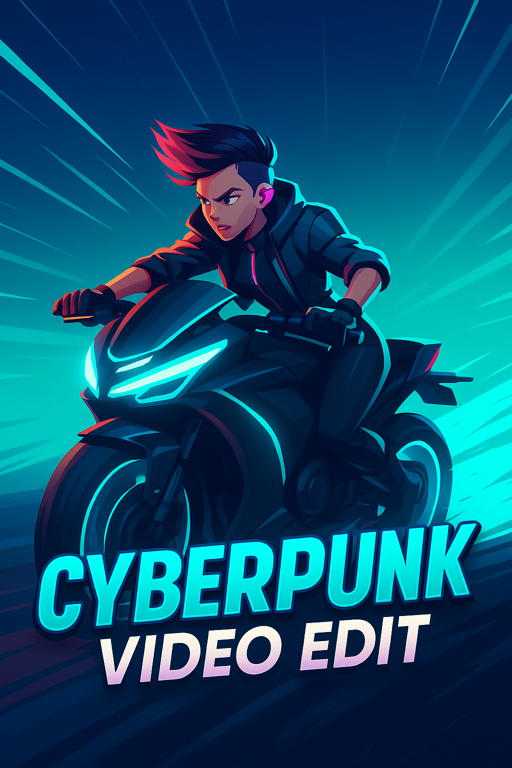 Dynamic Cyberpunk Video Edit Illustration with Bold Text