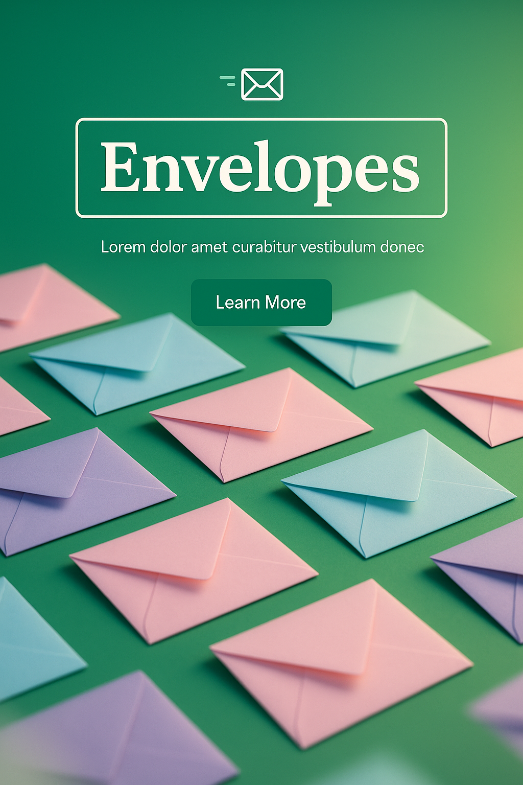 Colorful Envelopes on Green Background - Engaging Graphic Design