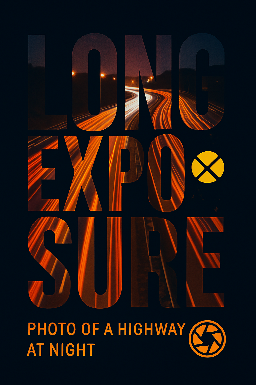 Dramatic long exposure photograph showcasing light trails on a highway at night. The bold typography enhances the visual impact, making it suitable for photography promotion or educational content.