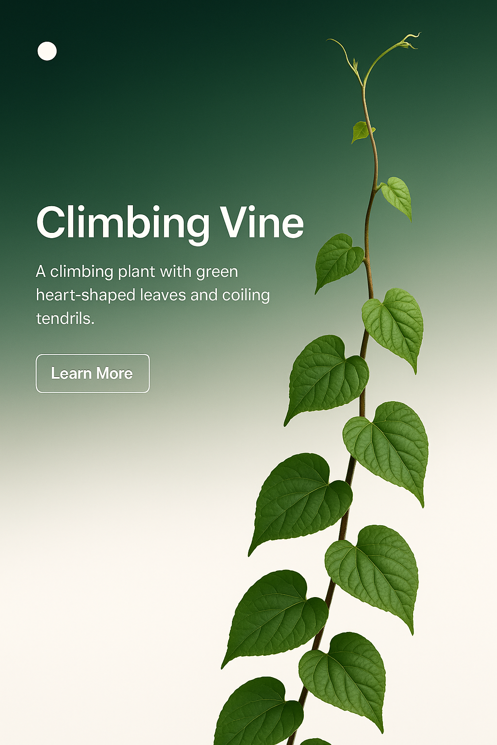 /Collection: /by davooda/Type: PNG/A realistic depiction of a climbing vine plant with heart-shaped leaves and coiling tendrils. The background features a gradient transitioning from dark to white, enhancing the design.