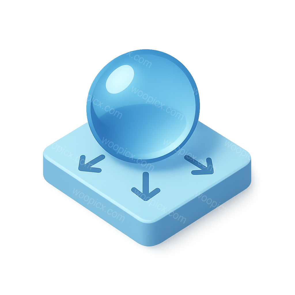 A 3D icon depicting a hydrophobic bead on a blue base with directional arrows, showcasing a glossy finish and volumetric effect against a subtle gradient background.