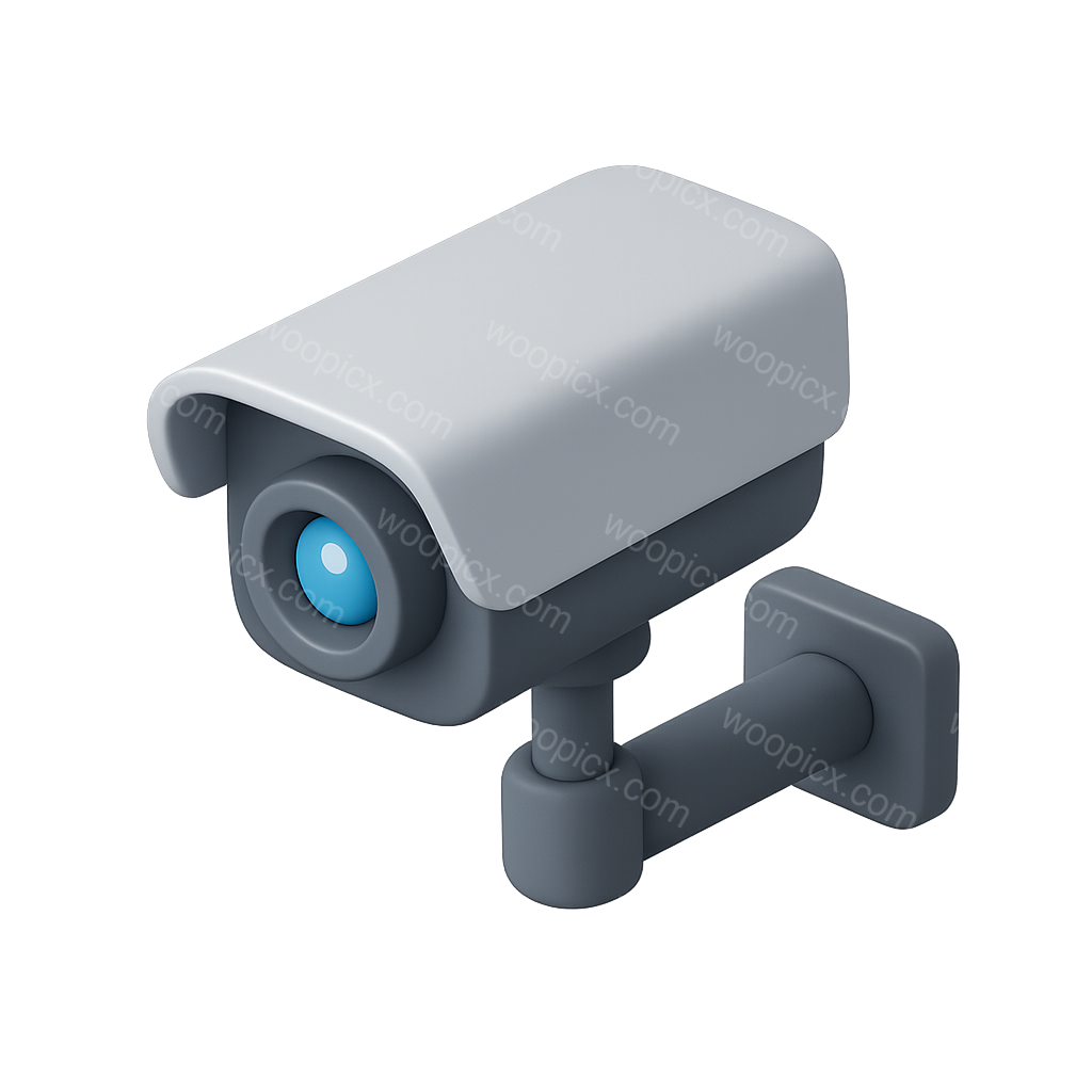 /Premium/Collection: /by davooda/Type: PNG/A modern 3D design of a security camera icon, featuring a sleek white casing and a blue lens. The icon is presented on a transparent background with a three-quarter isometric view, enhancing its volumetric appearance.
