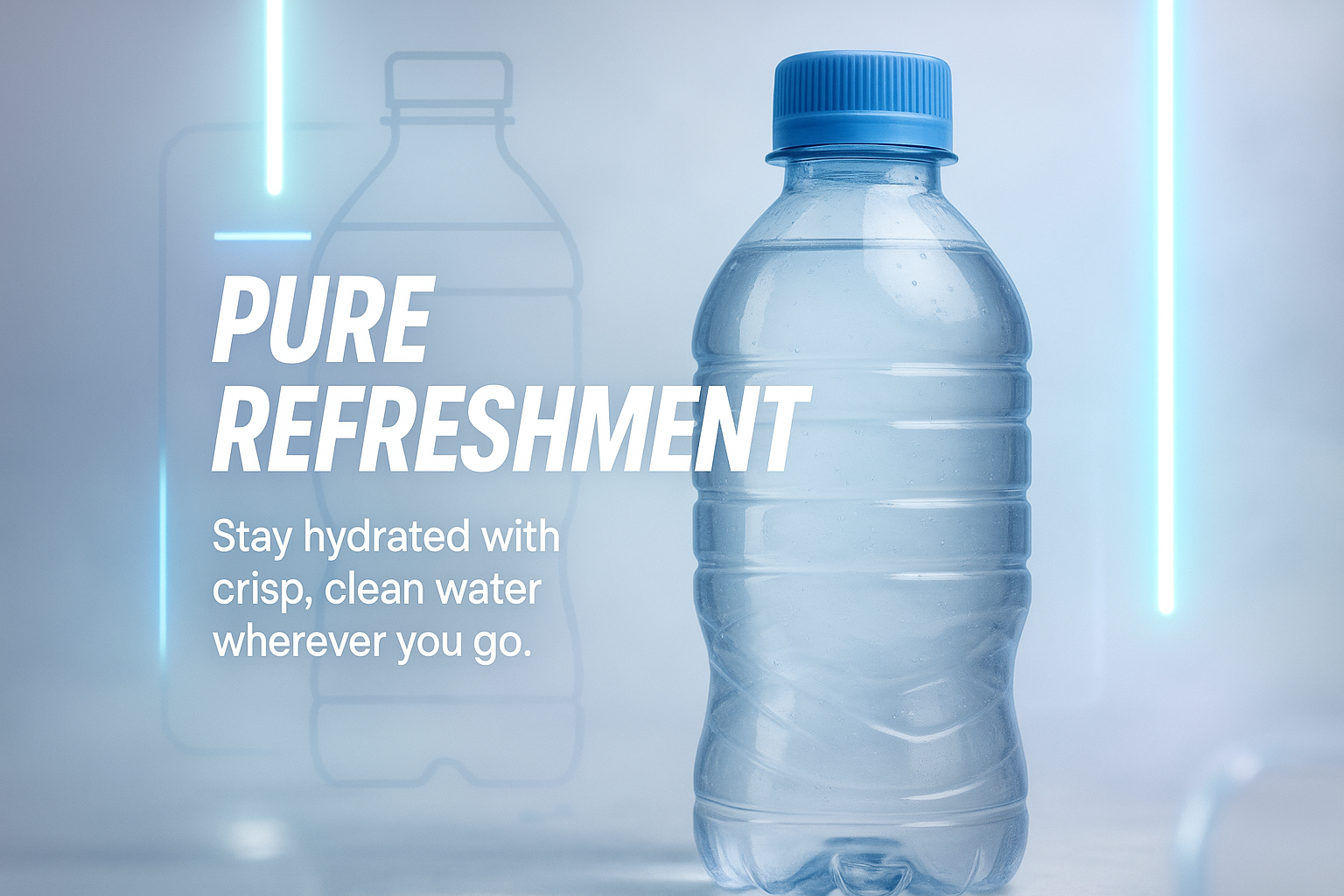 Promotional Image of a Plastic Water Bottle with Hydration Theme