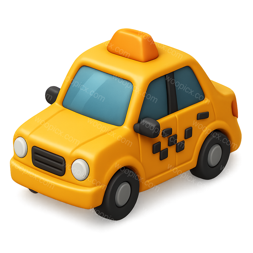 Stylized 3D Taxi Icon in Bright Yellow Color