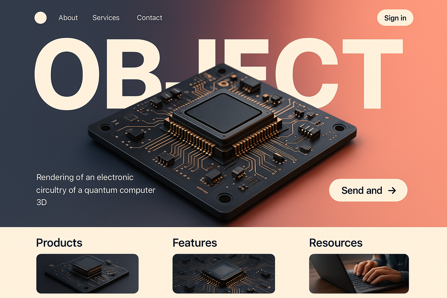 Minimalist Landing Page Design Featuring Quantum Computer Circuitry