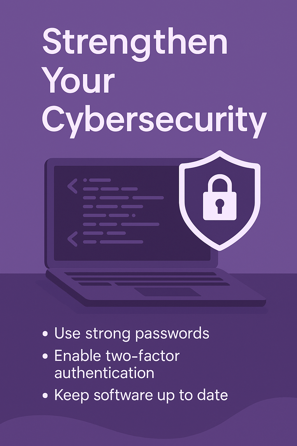 Informative graphic promoting cybersecurity awareness with a modern design, featuring a laptop and a shield icon. Ideal for educational or promotional use in tech-related content.