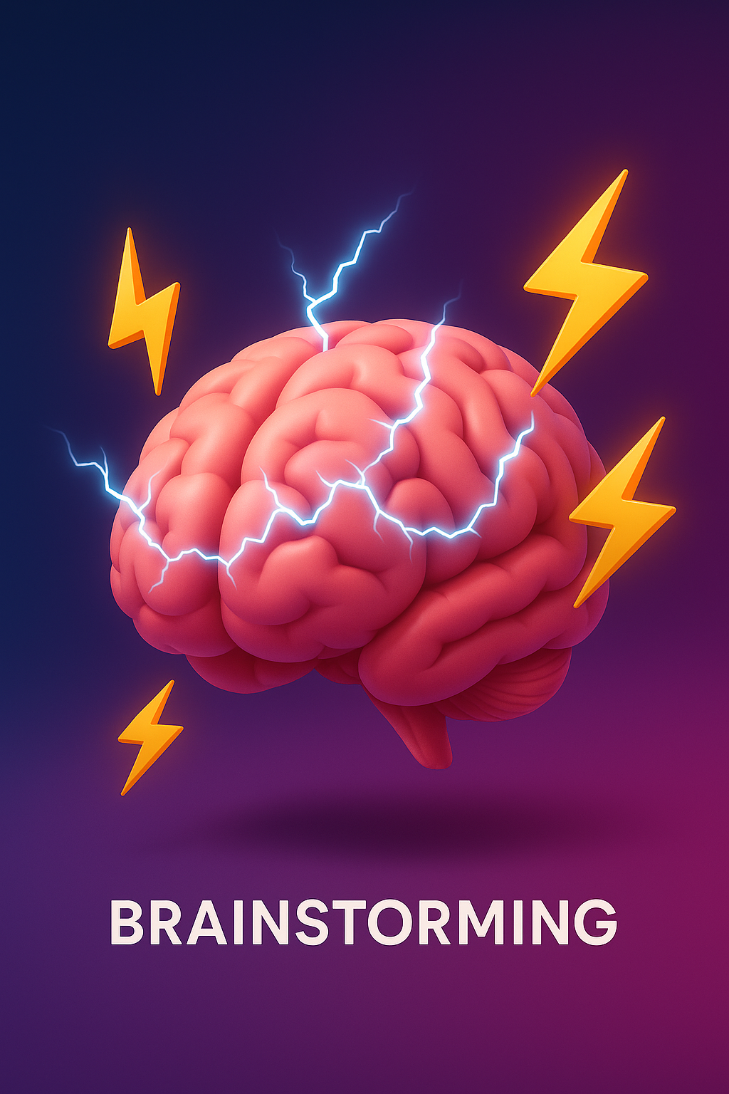 Energetic 3D Cartoon Brainstorming Concept with Lightning