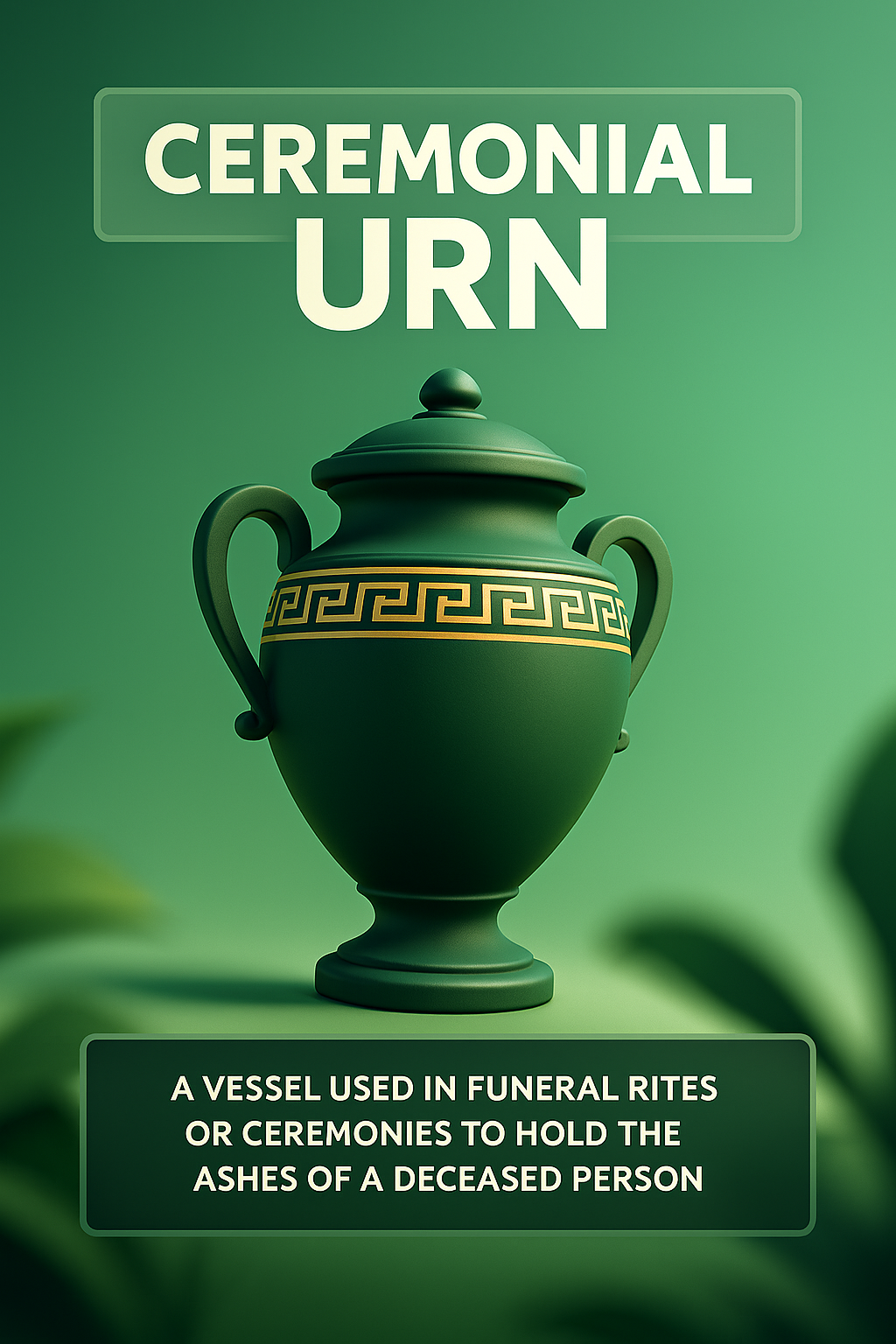 /Collection: /by davooda/Type: PNG/A meticulously designed 3D illustration of a ceremonial urn, set against a smooth gradient background. The urn features intricate detailing and serves as a vessel for holding ashes.